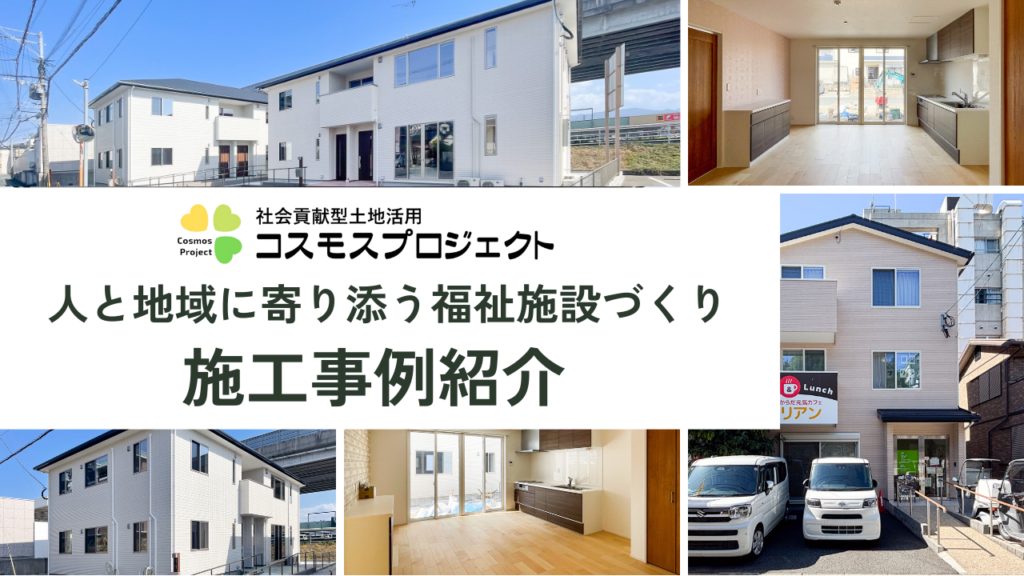 詳しい内容は「福祉貢献型土地活用」ページにまとめていますので、まずは概要をご覧ください。 福岡で土地活用・賃貸経営をお考えの方へ 株式会社コスモス