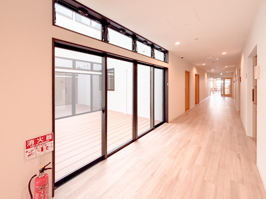 1階中庭の上部は吹き抜けになっているため、2階のホールもこの明るさ。