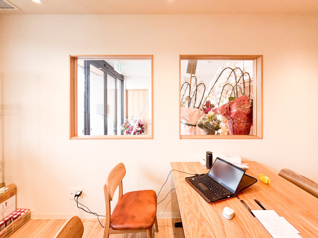 隣接する事務所からも、来客などが見えるよう室内窓を設置