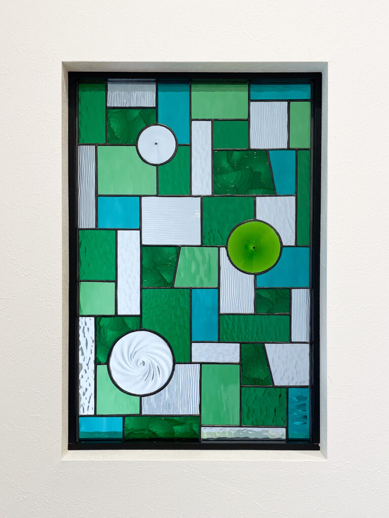 ▲1階、2階玄関を隔てる壁にはオリジナルのステンドグラスを施工