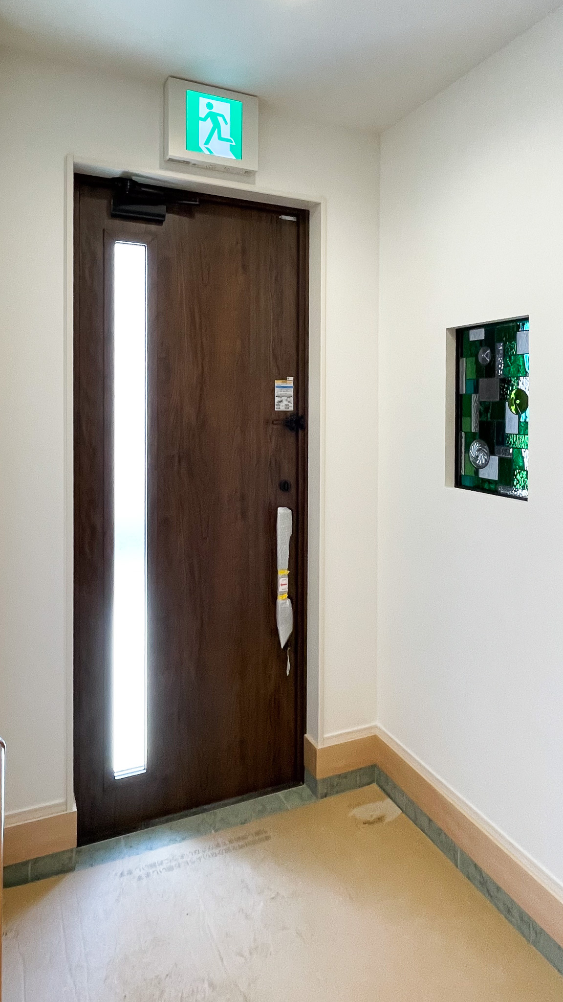 ▲1階、2階玄関を隔てる壁にはオリジナルのステンドグラスを施工